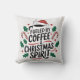Een gezellig kussen voor koffieliefhebbers en vakantiedromers. Moedige feestelijke typografie met hulst, snoepstokken en een kerstmuts. Perfect voor het inrichten van uw woonkamer deze kerst. Ontworpen door Le Petit Dodo.