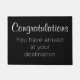Zwart met witte tekst "Gefeliciteerd - je bent op je bestemming aangekomen"