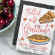 Voeg een groet van de Thanksgiving van uw familie toe. Het ontwerp bestaat uit pompoentaart-illustraties.
