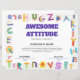 Introductie van de Geweldige Attitude Student Class Award, een perfecte manier om studenten te herkennen die positiviteit en enthousiasme belichamen! Deze in het oog springende prijs is voorzien van een leuk ontwerp dat een can-do-geest en een geweldige houding viert. Personaliseer het met de naam, datum en een speciale boodschap van de student om het echt memorabel te maken. Ideaal voor klaslokalen of buitenschoolse activiteiten, deze prijs inspireert studenten om hun positieve kijk te behouden en tegelijkertijd hun bijdragen aan een levendige leeromgeving te erkennen!