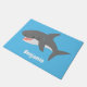 Een gelukkige, hongerige witte haai zwemt in de oceaan. Ontworpen in een leuke illustratiemodus op een blauwe achtergrond voor een leuke dag!