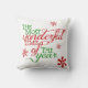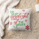 Festive gooit kussens voor het vakantieseizoen met ons prachtige kerstontwerp met rode sneeuwvlokken en rode en groene typografische tekst die de heerlijkste tijd van het Jaar vooraan leest, een grote rode sneeuwvlok en rode en witte verticale strepen achteraan!