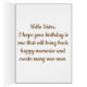 Deze "Happy Birthday Sister"-kaart heeft mijn gewijzigde versie van twee kleine meisjes in Victoriaans kleding, die in een appelboom zit. Ik heb de kleuren van het oorspronkelijke afbeelding verhelderd en meer appels aan de boom toegevoegd. Ik voegde witte wolken toe aan de blauwe hemel. Ik voegde meer bloemen toe aan de basis van de boom en voegde appels en een mand op de grond toe. Het afbeelding is gemaakt in licht stoffige roos en de tekst is bruin. De tekst aan de voorkant is voorzien van een klein hart en kan niet worden gewijzigd. De binnentekst kan worden veranderd om het even wat te zeggen u wilt.