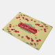 Een vers en mooi , geïnspireerd kersenontwerp, aanpasbaar, welkom mat. Maak deze retro welkome vlek uw zeer met klantgerichte tekst en kleurenopties. Verkrijgbaar in twee formaten. Achterkant van sliplatex en trillende afdrukking - dit kleine mat is goedgekeurd voor binnenshuis en overdekte buitenruimten. Maakt een lief en persoonlijk cadeau voor de opwarming van het huishouden. "Het leven is slechts een kom kersen - dus leef en lach er allemaal om!"