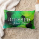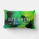 Een stijlvol GEZEGEND KUSSEN met inspirerend aanhaling die zegt GEZEGEND IN JEZUS NAAM. Het ontwerp shows een GROEN bokeh patroon op de achtergrond. De tekst is , zodat u kunt PERSONALISEREN door jouw namen toe te voegen. Overeenkomende items en andere beschikbare kleuren.