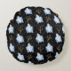 Witte laken geesten en kandelaars drijven tegen een achtergrond van spookachtige spinnenwebben in het patroon op dit gotische ronde kussen! Spooktacular voor Halloween inrichting en het toevoegen van comfort en gezelligheid aan uw eigen spookhuis!