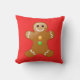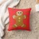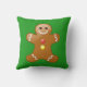 Gingerbread man met oranje en groene gumdrop knop op rood aan de ene kant en een gingerbread man met rode en gele knop op groen aan de andere kant.