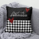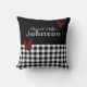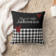 Het proefontwerp van mevrouw Monogram gingham bevat uw namen in feestelijk handschrift en een populair buffelpatroon voor uw achternaam in zwart-wit. De accenten zijn rood en zwart gebuffel. De onderste helft van de kussen is zwart-wit buffelcontrole/gingham patroon en de bovenste helft zwart. Met al dat rood en groen rond het huis op de feestdagen, zal deze zwarte en witte kussen toch wel uitkomen! #BuffaloPlay #Gingham #BuffaloCheck