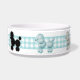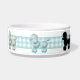 hondengerecht gemaakt met een lichte turquoise en witte gingham band, rond het schaaltje, en afbeeldingen van turquoise, zwarte en witte fluffy poodles rond het schaaltje. Het aanpassen staat u toe om tekst toe te voegen, voor een gepersonaliseerde kom uw hond kan trots zijn op. Het maakt een geweldig cadeauidee.
