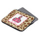Een elektronicazak voor leraren met een achtergrond van girafdruk. Personaliseer met jouw naam onder Roze Schoolhouse.