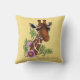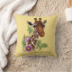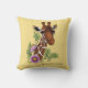 Portret van een schattige giraffe tegen een gele achtergrond met roze bloemen.