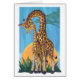 Giraffe Mama en Baby kinderkunst gemaakt door Stel je voor! Design op elektronica, accessoires en geschenken is een griezelige scène van een moeder en baby giraffe die tegen een staande zon staat en een getextureerde blauwe hemel die samen met de nek van de moeder over elkaar gekruld wordt zodat haar en haar baby wangen in een liefdevolle pose kunnen aanraken. Giraffe liefhebbers van alle leeftijden zullen graag dit schattige giraffenschilderij als cadeau krijgen .