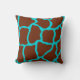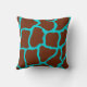 Een fel turquoise- en bruine girafdruk versiert deze retro-stijl werpt kussen. Het ontwerp komt uit de oorspronkelijke kunst.
