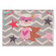 Een blanke konijnensuperheld in een roze masker en jurk met een hart, een bruine cape en gestreepte sokken op een achtergrond van grijze en witte strepen, roze, diepe wijn, rode sterren, en blauwe en rode bomen op producten voor thuis, kantoor en voor persoonlijk gebruik. Dit leuke Girl Superheld Bunny-ontwerp is geweldig voor kinderen en volwassenen die van leuke, kleurrijke, griezelige design houden.