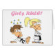Dit kleine meisje liet de kleine jongen zien die de baas is! Hier is ze met het gezegde "Meisjes RULE!".