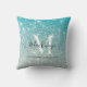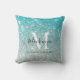 Girly Aqua Blue Silver Ombre Glitter Monogram Name Sierkussen