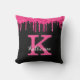 Girly Black Hot Pink Glitter Drift Monogram Naam Kussen
