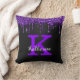 Girly Black Paars Glitter Drift Monogram Naam Kussen