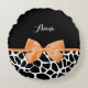 Girly Giraffe print Oranje lintje met naam Rond Kussen