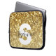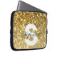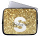 Girly Gold Glitter Sparkles Monogram Script Name Laptop Sleeve