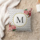 Girly Gray White Chevron Floral Monogram Kussen
