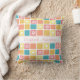 Denk aan de lente met dit korrelige afgeronde vierkant tegelpatroon... met kussen in turquoise, koraal en geel, versierd met schattige harten en retro-maisiebloemen. Pas dit retro model aan door de naam van een tienermeisje toe te voegen.