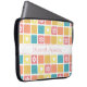 Een dunne vierkante 15-inch laptophoes met moderne, afgeronde hoeken in lentekleuren, versierd met schattige harten en retroflecterende bloemen. Personaliseer u door de naam van een meisje met een kleine roos toe te voegen aan dit retro mod hoesje in tinten van koraalroze goudgeel en turquoise blauw. Origineel Kunstauteursrecht ©OhSoGirly