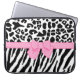 Girly Leopard Zebra Animal Print and Cute Pink Bow Laptop Sleeve