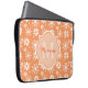 Voeg een smet en een kleine kijker toe aan uw persoonlijke stijl met dit schattige oranje en witte strakke 15-inch laptophoes met een stijlvol monogram. Pas dit vrouwelijke bloemontwerp aan door jouw naam en monogrammed initiaal toe te voegen.