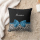 Personaliseer door de naam van je tienermeisje toe te voegen aan dit trendy zwart-witte luipaard print patroon vierkante gooi kussen met een stijlvol klassiek kobalt blauw lint gebonden in een schattige girly boog. Vlak bedrukt afbeelding, niet echt lint.