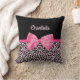 Girly Pink Black Leopard Print Cute Bow and Name Kussen