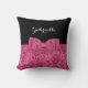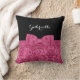 Een licht donkerroze en zwart roos floreel patroonkussen met een schattig lintje gebonden aan een boeg. Ieder meisje zou graag zien dat dit chic design gepersonaliseerd wordt met hun naam. Platte afbeelding, geen echte boog.