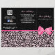 Maak een mode-statement met deze girale roze en zwarte luipaard print drievoudige brochure flyers met een schattige hete roze boog. Dit ontwerp is ideaal voor een prijslijst of bedrijfsoverzicht. Personaliseer door de naam van de schoonheidsboutique, sociale media info, en code QR toe te voegen. Niet jouw soort zaken? Dit ontwerp werd gecreeerd als sjabloon zodat kunt u uw douaneinformatie aan reeks gemakkelijk toevoegen uw zaken van keus. Platte bedrukte afbeeldingen, NIET voorzien van een werkelijke lintboeg.