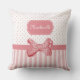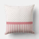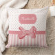 Een meisjesachtig zacht roze strepen vierkant gooi kussen met schattige roze en witte stippen en een stijlvolle lichtroze stip lint vastgebonden in een vrouwelijke boog. Personaliseer door de naam van uw speciale jongedame toe te voegen. Vlak bedrukt afbeelding van een boog, GEEN echt lint.