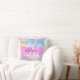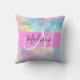 Girly regenboog holografische iriserende monogram naam en initiaal gooi kussen. Uw aangepaste naam en monogram zijn geschreven in een elegant handgeschreven schrift met een roze achtergrond. Een perfect verjaardags- of kerstcadeau!