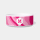 Schattigee aangepaste kat of kleine hondenkom om te personaliseren met een roze abstract patroon erop gedrukt. Voeg een monogram voor huisdieren toe.