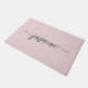 Meisjesachtige vrouwelijke minimalistische eenvoudige schone roze monogram naam handtekening script aangepaste persoonlijke deurmat. Dit ontwerp met je voornaam in een mooie handgeschreven stijl met zwierende staart lettertype handtekening typografie (of kalligrafie) op een pastel stoffige roze of licht roze achtergrond. Prachtig stijlvol vrouwelijk cadeau voor een nieuwe woning, ook voor verjaardag, trouwdag, jubileum, bruidsfeest, vrijgezellenfeest en Het is voor de meid die schone minimalistische dingen leuk vindt.