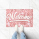 Nog een stijlvolle deurmat van JessicaAmber - vraag naar aangepaste bestellingen! Deze aanpasbare rubberen mat is voorzien van grote monstera blaadjes in medium warm roze, op een pastel lichtroze achtergrond. Je kunt het afbeelding veranderen in je eigen foto. U kunt ook de achtergrondkleur wijzigen. Bovenop staat het woord 'Welkom' - dat je ook kunt veranderen, samen met de onderstreping - in een leuk kalligrafielettertype. Maakt een geweldig cadeau voor je moeder of vrouw! 🌙 Bezoek mijn winkel voor meer moderne design voor gebladerte Zazzle.com/DriftwoodAndDreams ✔ Voor aangepaste bestellingen, stuur een bericht over Zazzle