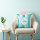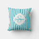 Girly Turquoise Painted Stripes Monogram en naam Kussen