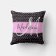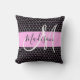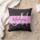 Glam- en girale zwarte en roze metalen honingraatbijen monogram naam en initiaal gooien kussen. Uw douanenaam en monogram worden geschreven in een elegant zwart-wit handgeschreven manuscript met letters met een roze achtergrond. U kunt de tekstkleur en de doopvontstijl en de grootte veranderen gebruikend de pas optie aan.