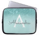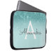 Glam Blauwgroen Aqua Blue Glitter en Sparkle Monog Laptop Sleeve