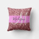 Meisjes en glazen roze roze roze roze glitter sparkles white monogram name and initiaal gooit kussen. Uw douanenaam en monogram worden geschreven in een elegant handgeschreven manuscript met letters met een roze achtergrond. Een perfecte verjaardag of kerstcadeau!