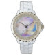 Glam Lila Gold Abstract Verf Elegant Monogram Horloge
