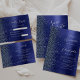 Glam Navy Blue Metallic Glitter Script Wedding Kaart
