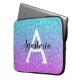 Glam Paars Aqua Glitter Sparkle Gradient Monogram Laptop Sleeve