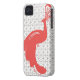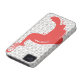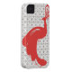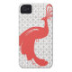 Een gedurfde rode pauw valt op door het bruine en witte achtergrondpatroon. Hoesje-Mate® iPhone 4/4S hoesje. Ontwerp © 1201AM.