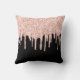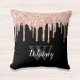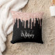 Stijlvolle monogrammed glitter drip werpen kussen - Gelaagde roze glitter druppelt op een zwarte achtergrond met een aanpasbare witte manuscriptnaam sjabloon en vette monogram in grijs.