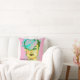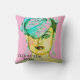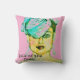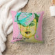 Glamour Art chic Paris model throw pillow with bold colors. Pinks and blue green colors on drawing of Paris runway model.
