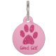 Deze aangepaste vrouwen hondennaamplaatje heeft een glamoureus roze ontwerp. Het centrum beschikt over een hete roze glitter hond pootafdruk, gevolgd door een voorbeeld "Good Girl" naam gedrukt in een elegant script lettertype. Op de achterkant van het label staat de contactgegevens of het telefoonnummer.