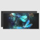 Twee transparante, lichtgevende, turquoise, artistiek getekende libellen op een nachtblauwe achtergrond met lichtgevende algen en vuurvliegjes in het meer. Lichtgevende libel.